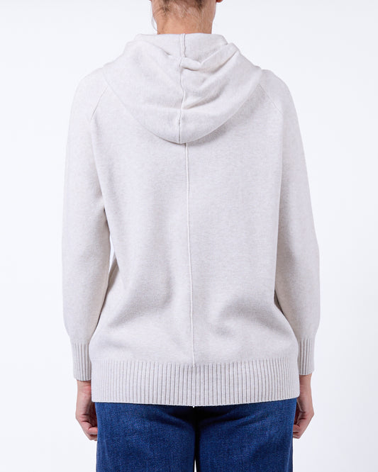 Beige Hood Drawstring Kangaroo Pocket Long Sleeve Rib Trim Pullover