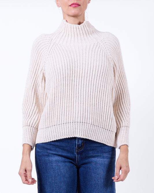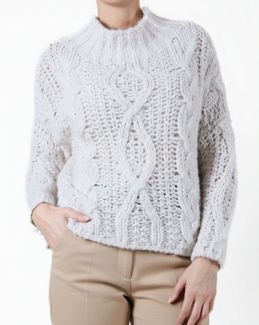 Ivory Mock Neck Cable Knit Drop Shoulder Sweater