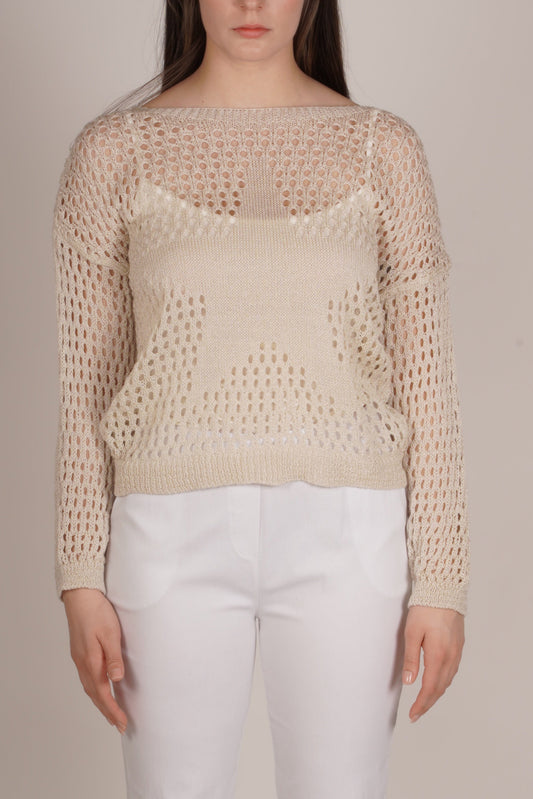 Snow Drop Shoulder Lurex Crochet Stripe Sweater
