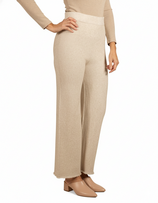 Oatmeal Pull On Wide Leg Raw Edge Detail Pant