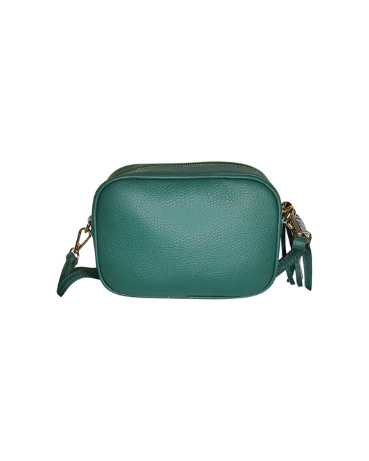 Green Pebbled Leather Crossbody Bag with Tassel Detail