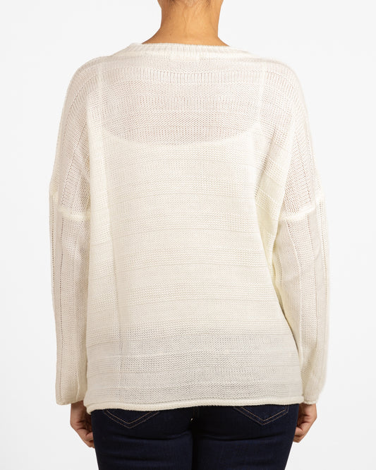 Snow Drop Shoulder Gold Foil Front Box Shape Double Knit Sweater