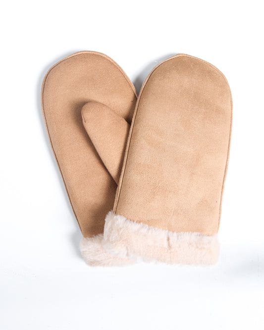 Faux Suede Fur Trimmed Camel Mittens