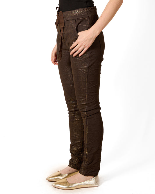 Espresso Pull On Drawstring Gold Front Foil Pant