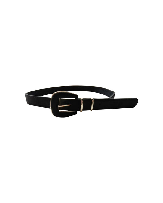 Black Leather Belt with Gold Buckle