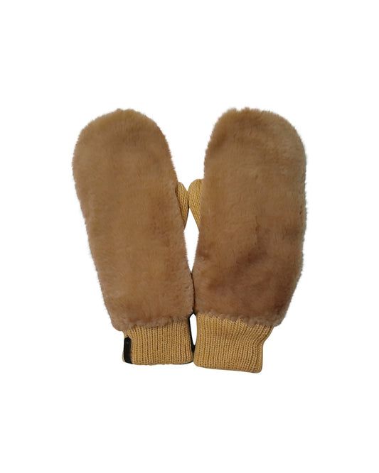 Beige Faux Fur Mittens With Knit Palm And Cuff