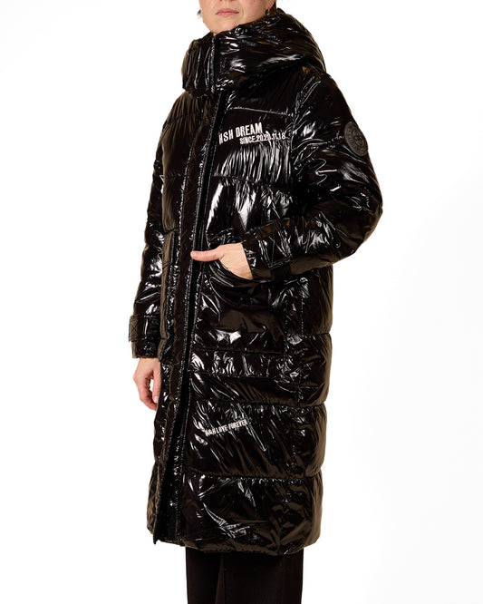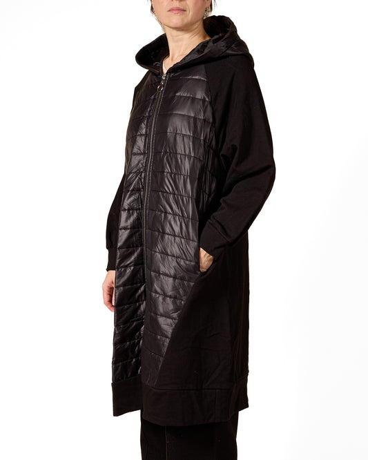 Black L/S Zip Front Puff Combo Fabric Coat