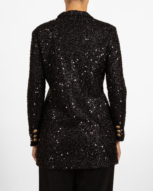 Black Double Breasted Sequin Jacket w/ Gold Buttons