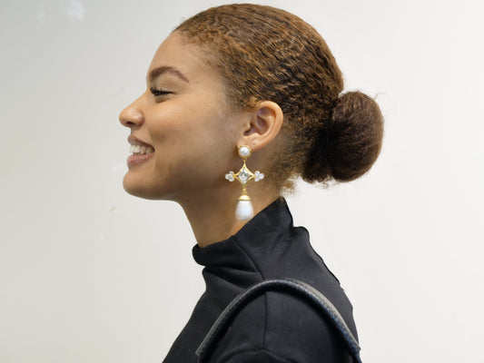 Women’s Gold-Tone Baroque Pearl and Crystal Cross Drop Earrings