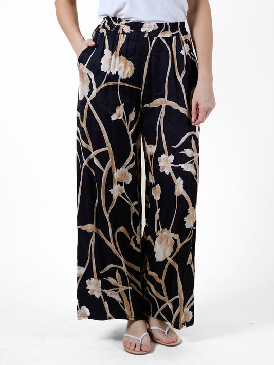 Black Floral Wide-Leg Pants